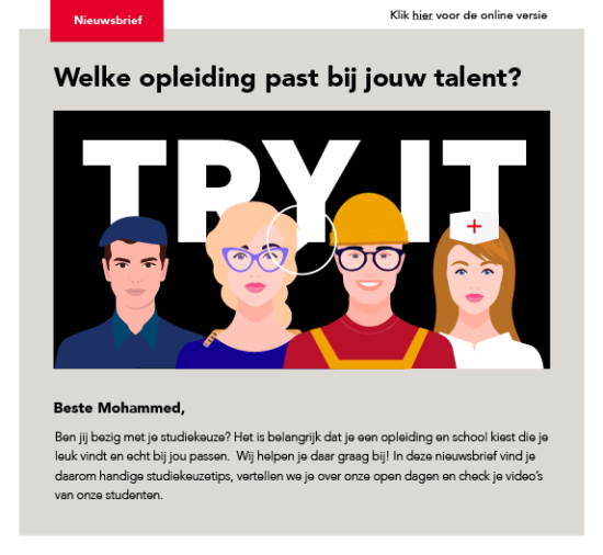 Schrijf je in voor de Studiekeuze Nieuwsbrief en ontvang handige studiekeuzetips, updates over onze Open Dagen, video’s van studenten en meer! Zo mis je geen belangrijke informatie.
